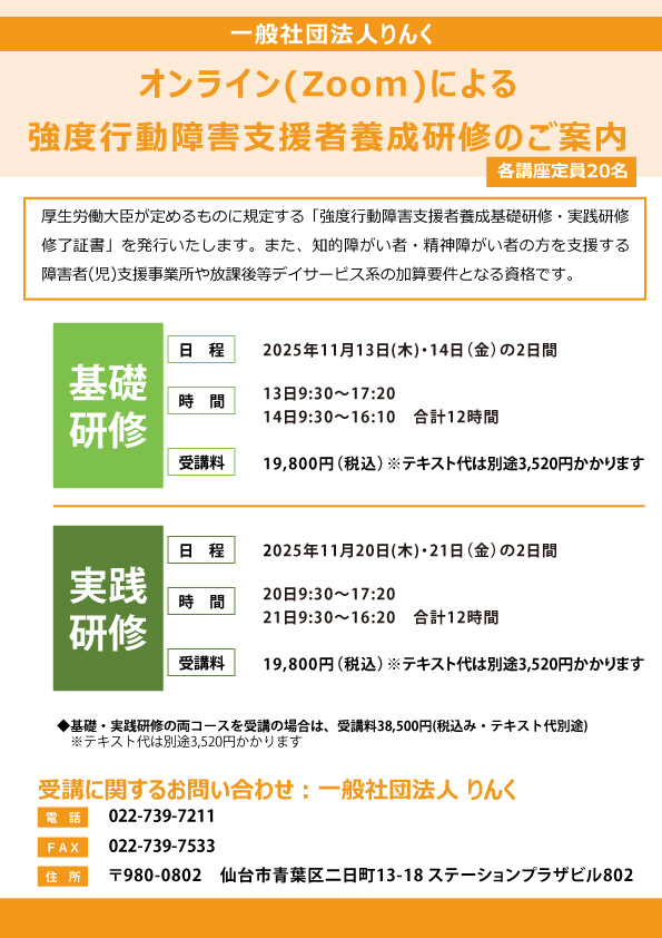 2025年11月強度行動障害支援者養成研修 参加申込書ダウンロード
